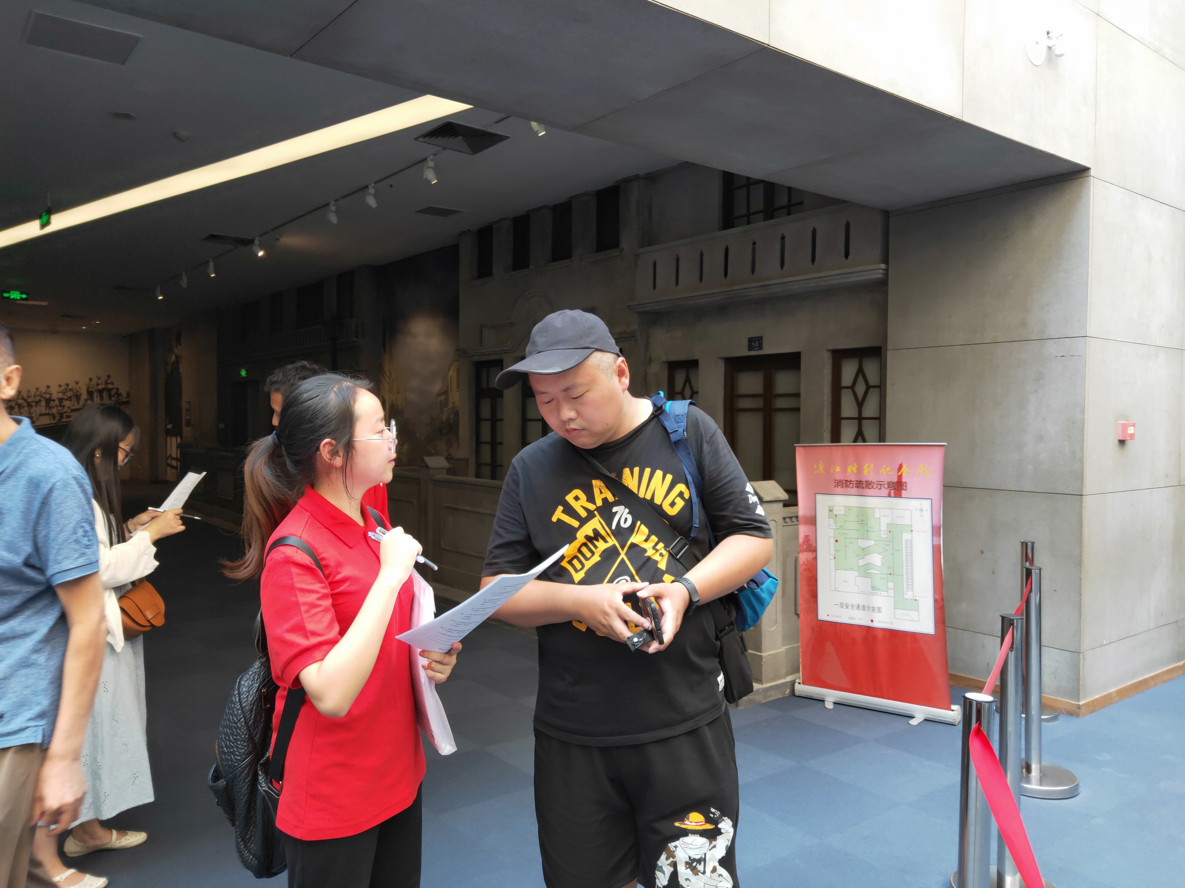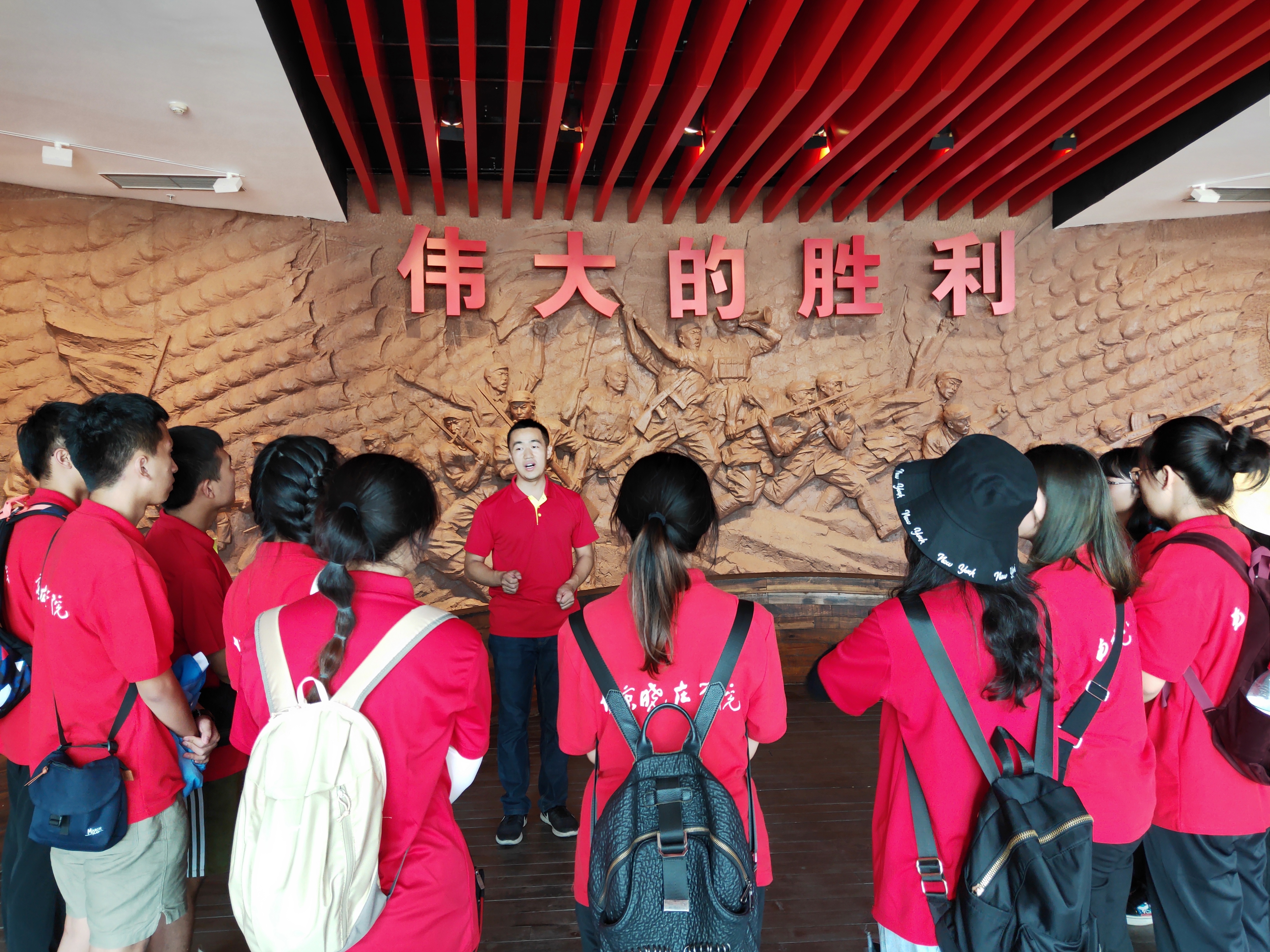 开展志愿服务 传播红色故事 同学们在参观完渡江胜利纪念馆后,纷纷表示“南京是一座有着光荣革命传统的英雄城市,作为新时代大学生,我们有责任让更多人了解南京的革命故事”。实践团成员杨军在暑假前后6次来到纪念馆熟悉展出的物品,背诵了约1万字的讲解稿,前两次讲解考核都失败了,一直到第3次才成功,被顺利录用为义务讲解员。他高兴的说,暑假能在纪念馆为全国各地参观的人员进行讲解,我觉得是一件光荣而有意义的好事情”。