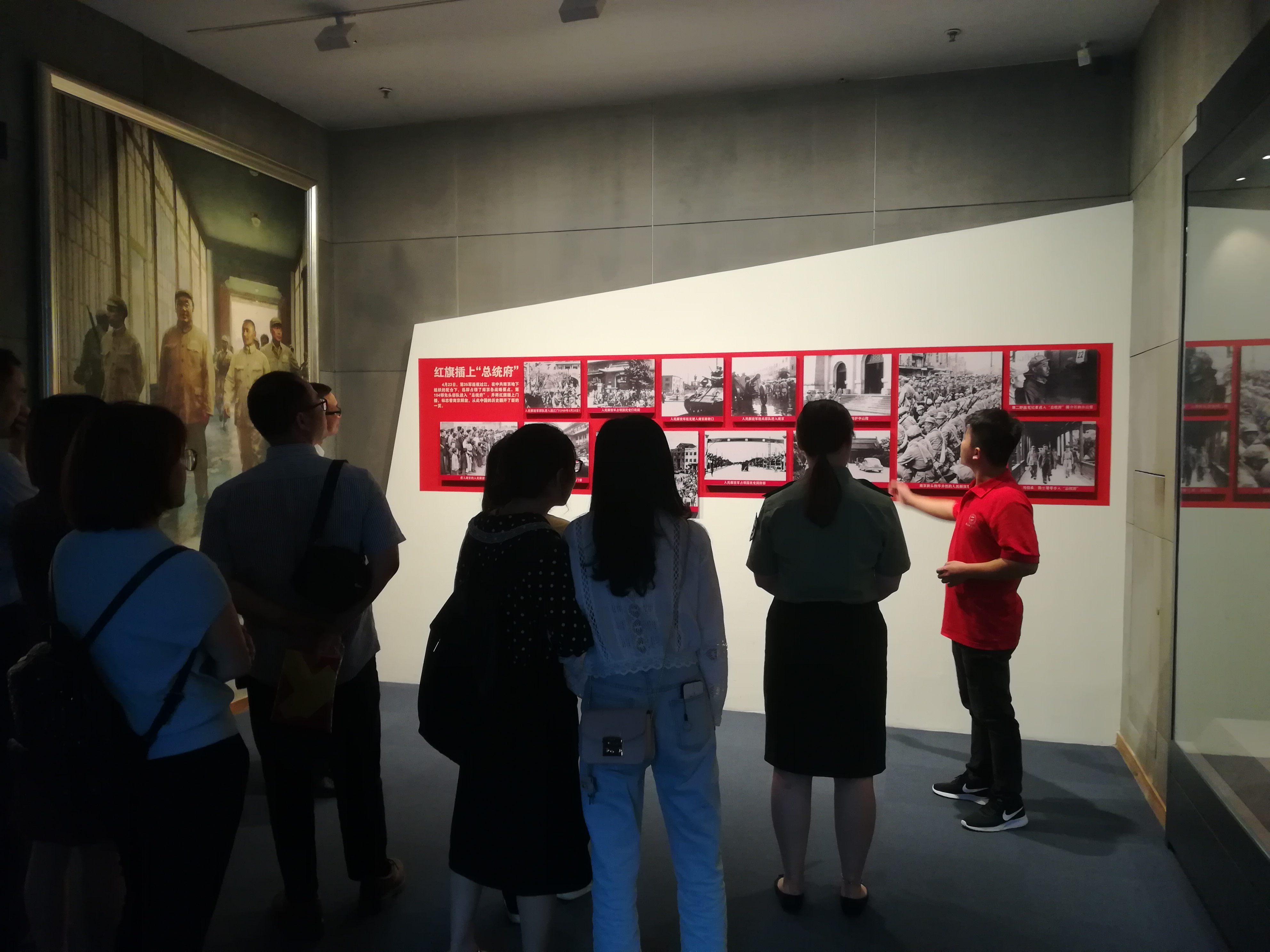 走访红色遗址 感悟红色精神 实践团成员顶着酷暑烈日,先后到南京中国近代史遗址博物馆、梅园新村、渡江胜利纪念馆、中山码头、浦口码头等处,实地观摩岁月的变迁,触摸时代的沧桑,领悟历史的必然。在梅园新村,通过一件件旧物件、一张张珍贵的照片映射出一代伟人周恩来同志崇高的品格和人格魅力;秦淮河口的渡江胜利纪念馆把大家带回到那段风雨如磐的峥嵘岁月;扬子江畔的渡江胜利纪念广场大型群雕“千帆竞渡”展现着百万雄师过大江的雄风与豪迈。