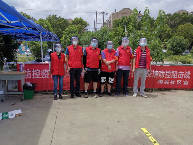 为全面落实市委“两在两同”工作要求,环境科学学院迅速成立了9人抗疫先锋队,随时待命投入到疫情阻击战中。由学院党委书记段海宝带队,王小雷、肖晖、张辉、王林、何同畅、黄晴、王晓波、张威共9名教师志愿者加入到学校抗击疫情志愿服务先锋队中,一起前往南京市江宁区陶吴社区进行志愿服务。恰逢第5次核酸检测,全体党员冒着高温,分工合作,主动帮助医生进行信息登记,测量体温,现场维持秩序,极大地提高了工作效率。