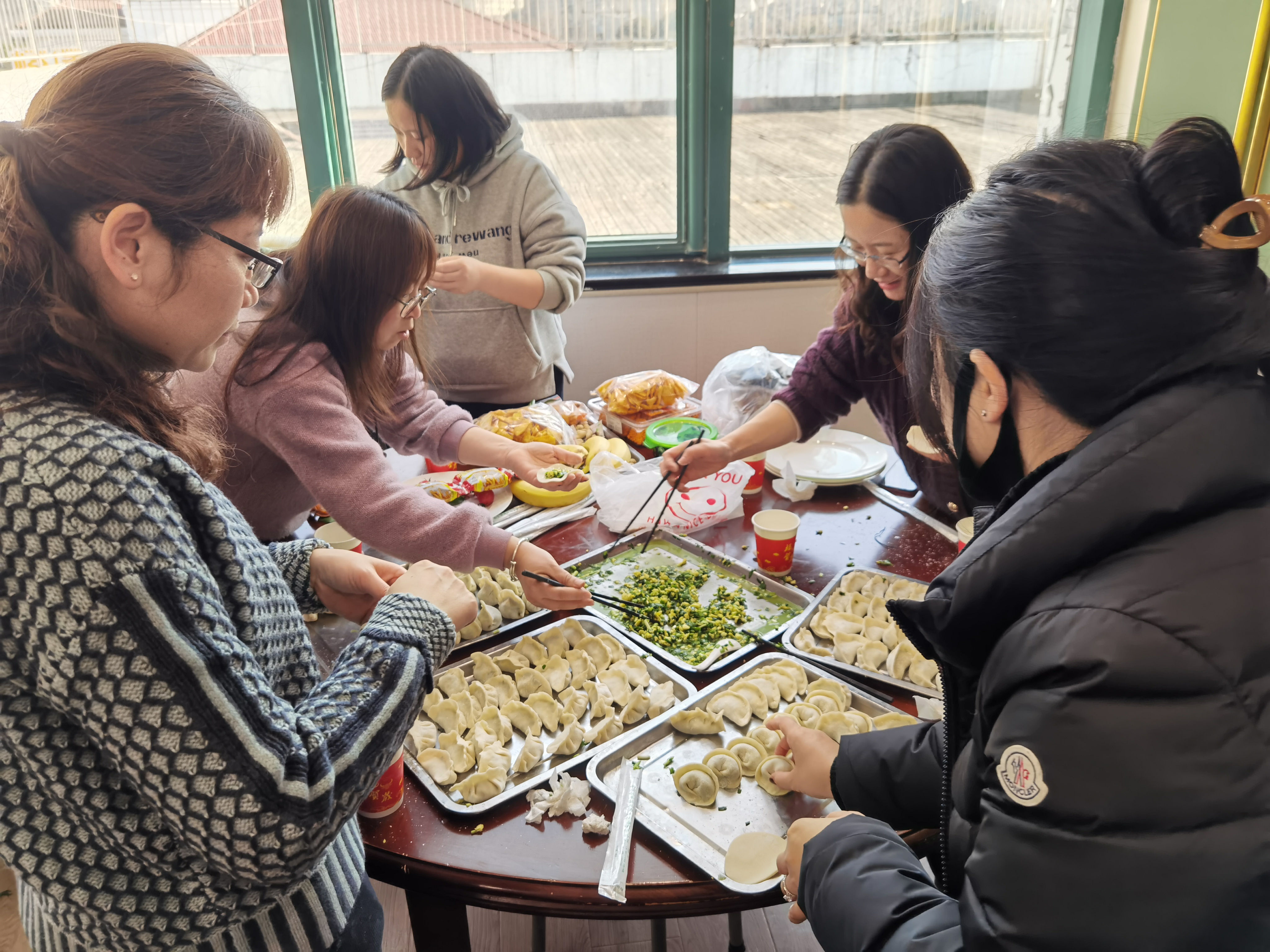 包饺子是我们院的迎新传统,饺子是为“更岁交子”,象征着团圆福禄,吉祥如意。来自五湖四海的老师们各显身手,包出元宝饺、月牙饺、小锁饺,还有钱包饺,热火朝天地忙得不亦悦乎,处处洋溢着浓浓的家庭气息。