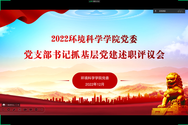 为了全面贯彻习近平新时代中国特色社会主义思想和党的二十大精神,充分发挥党支部坚强战斗堡垒作用,不断加强和改进基层党组织建设工作,提升党支部建设水平,2022年12月29日,环境科学学院党委以腾讯会议的形式召开了2022年党支部书记抓党建述职评议会。学院党委委员、党支部书记、各支部委员参加了本次会议。会议由学院党委书记段海宝主持。