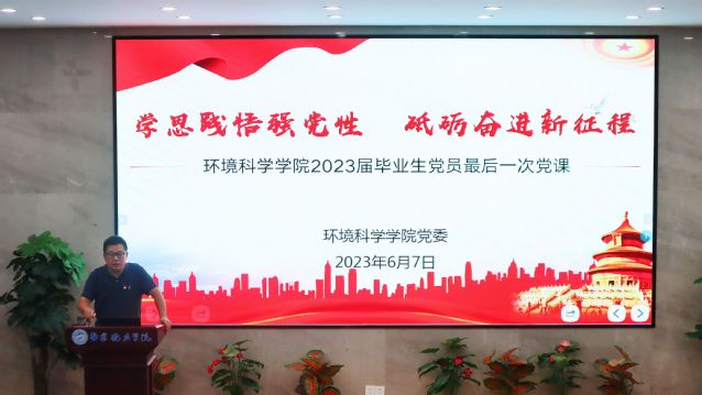 为深入学习贯彻习近平新时代中国特色社会主义思想主题教育,增强毕业生党员的党性修养、党员意识和社会责任,充分发挥毕业生党员的先锋模范带头作用,环境科学学院党委于2023年6月7日开展了“学思践悟强党性 砥砺奋进新征程”毕业生主题党日活动。