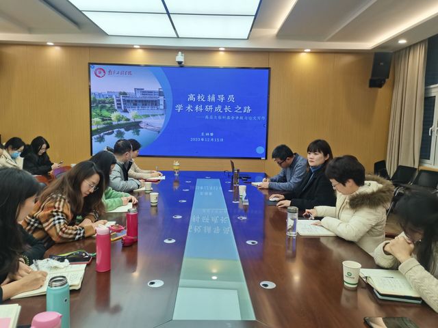 12月15日上午,环境科学学院“环育·菁英”师能提升训练营在理科组团A114开讲。南京工程学院大学生思想政治教育研究所特约研究员王祎黎老师以“高校辅导员学术科研成长之路——高层次社科基金项目申报与论文写作”为题应邀进行了讲座。环境科学学院及兄弟学院辅导员共二十余人参加。讲座由环境科学学院党委书记杨茹玮主持。