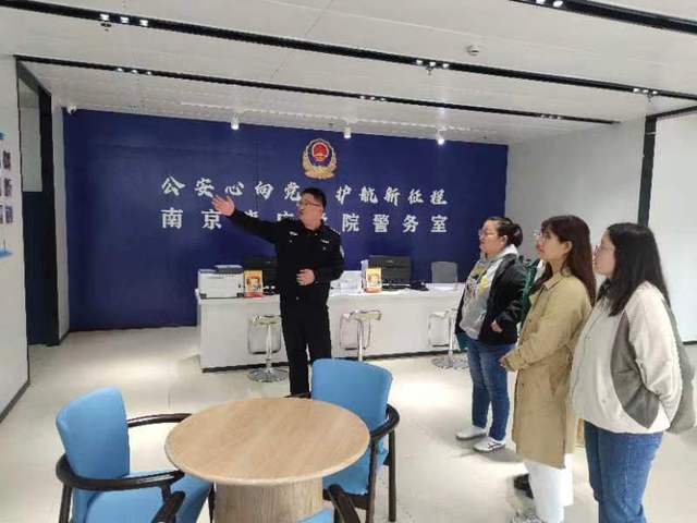 在参观过程中,警务室负责人张警官详细介绍了警务室的日常工作内容、人员配置以及近年来在校园安全防范、突发事件处置等方面的工作流程及成果。双方探讨了学生管理工作的新理念新方法,并从消防安全、交通安全、网络安全、法制教育、防诈骗等方面展开交流,并就如何结合学院特点开展法制教育、安全教育等方面进行了探讨。
