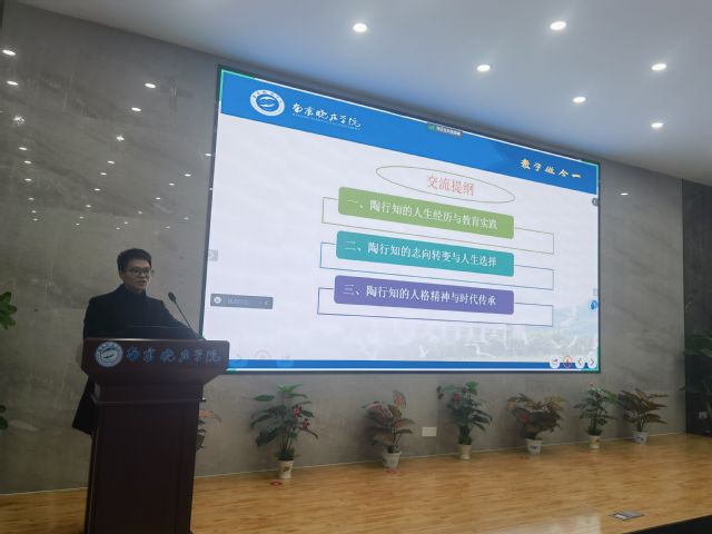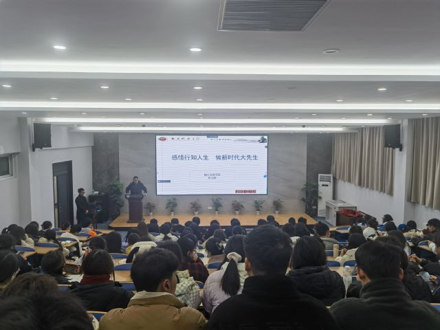 为弘扬行知文化,传承行知精神,落实立德树人根本任务,12月12日晚,环境科学学院举办学陶师陶教育专题讲座,本次活动邀请陶行知研究院程功群老师做题为“感悟行知思想做新时代大先生”专题讲座。讲座由环境科学学院党委副书记。副院长王小雷主持。2023级全体新生代表参加了本次讲座。