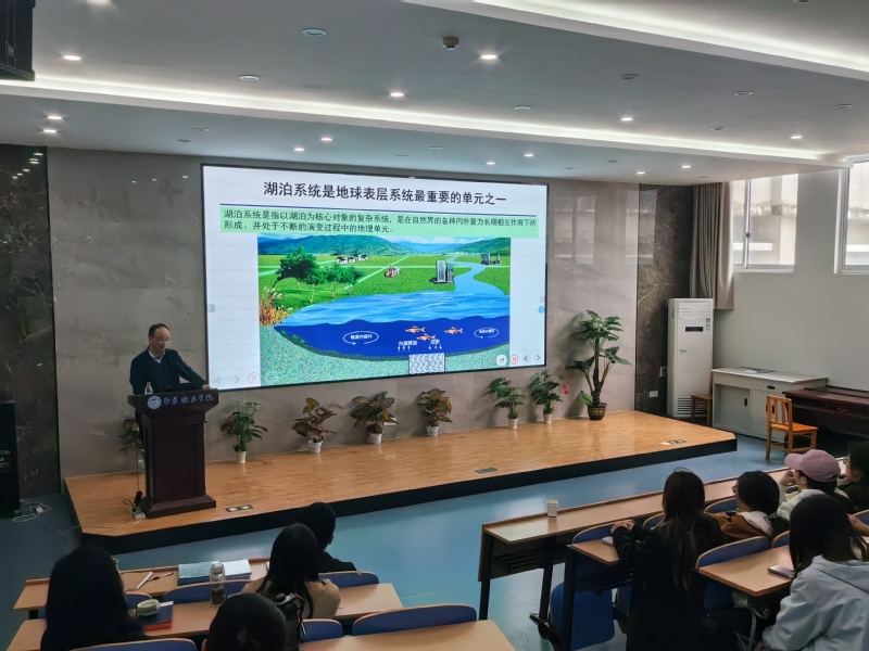 为深入学习贯彻习近平生态文明思想,落实国家关于湖泊湿地保护与可持续利用的战略部署,环境科学学院“思享会”4月14日特邀中国科学院南京地理与湖泊研究所薛滨研究员,为师生作题为“湖泊与湖泊科学”的学术报告。报告会由王小雷副教授主持。薛滨研究员从湖泊的基本内涵、科学研究范畴及保护实践三个层面展开。他指出,湖泊在调节气候、维持生物多样性、提供水资源等方面具有不可替代的生态功能。结合太湖、鄱阳湖等典型湖泊的长期监测数据,他系统分析了我国湖泊生态环境现状,强调治理需遵循长期演化规律,构建“监测—模拟—调控—修复”的系统路径,并呼吁更多青年科研与教育工作者投身“十五五”湖泊保护事业。在互动环节,师生围绕湖泊环境保护、科研选题、科普传播等话题踊跃提问,现场气氛热烈。本次“思享会”有效拓展了师生对湖泊科学前沿的认知,进一步激发了投身生态文明建设的责任感与使命感。环境科学学院始终将高水平学术交流作为人才培养的重要抓手。通过“思享会”等平台邀请知名专家学者进校开讲,不仅拓宽了学生学术视野,更在潜移默化中强化了专业认同与科研志趣。学院将持续推动科研资源向教学转化,鼓励学生早进课题、早入团队,在国家急需领域锤炼